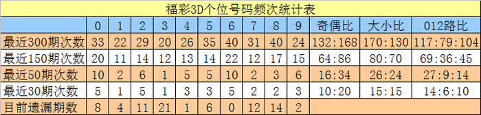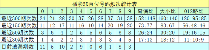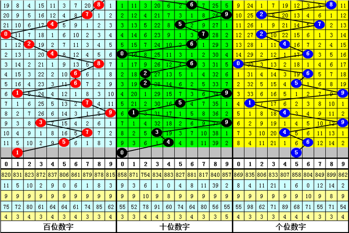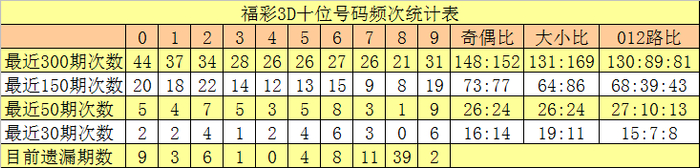 十位分析:前50期出号频次较高的号码为:9开出9次,6开出8次,2开出7次;出号频次较低的号码为:8开出1次,4、7开出3次。该位号码大小比为26:24,012路比为27:10:13。本期该位排除两码2、6,注意号码0、4、5,精选一码0。