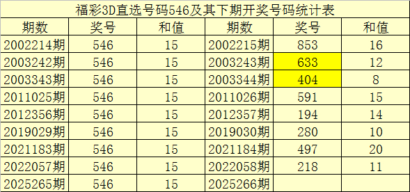 一、开奖回顾:第2025265期福彩3D奖号为546。奖号奇偶比为1:2,和值为:15,跨度为:2。